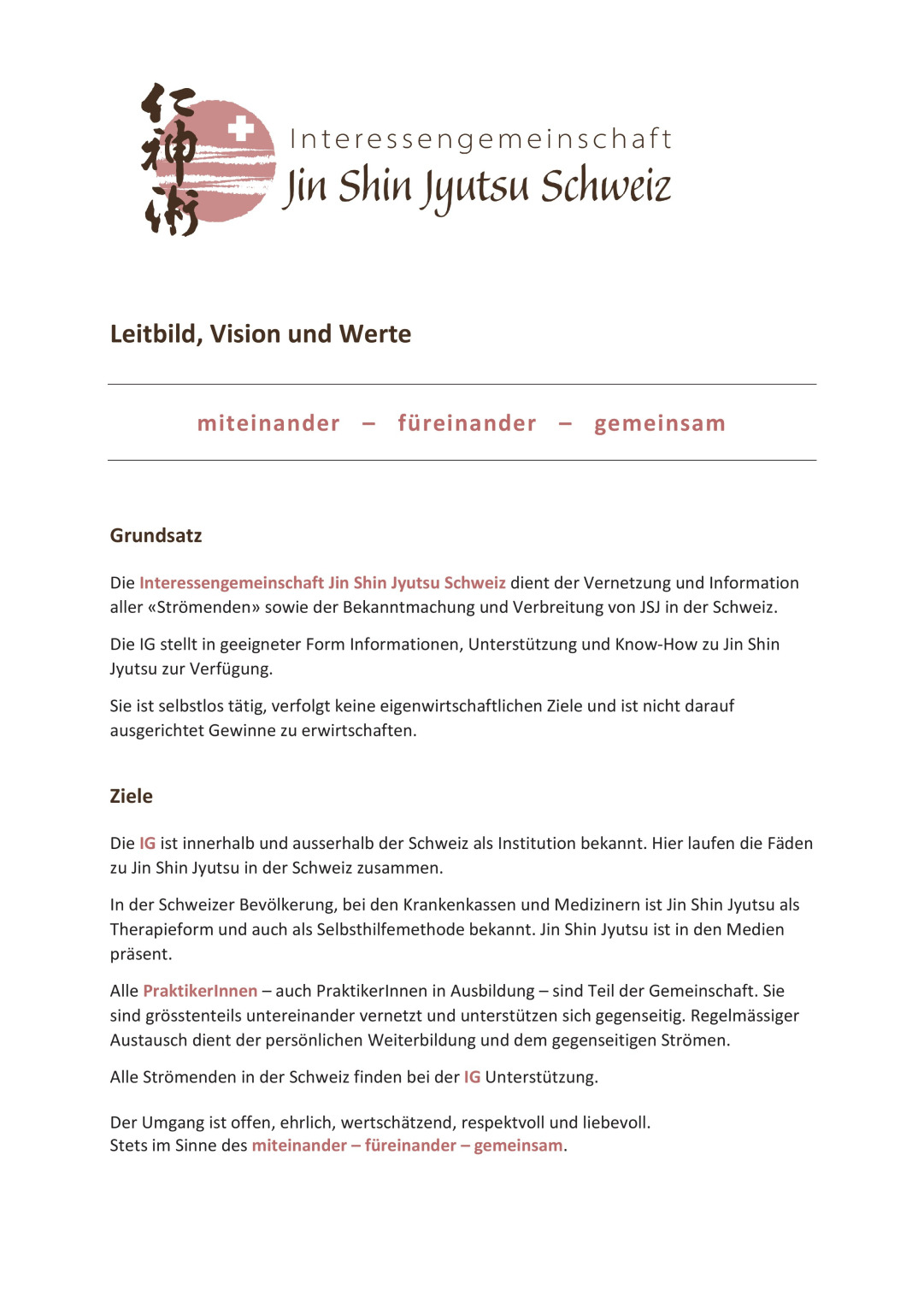 Der einzige Verein der Schweiz "Jin Shin Jyutsu Ostschweiz" musste im Frühjahr 2024 wegen Nachwuchsmangel aufgelöst werden. Und so gab es in der Schweiz nur noch die Homepage "jinshinjyutsu.ch" und einen Newsletter. Einzig dieser Newsletter und ein alljährlich stattfindendes Treffen von interessierten PraktikerInnen dienten bislang der Vernetzung.